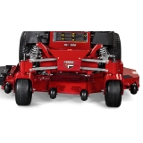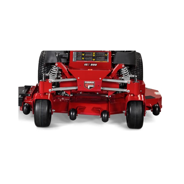 The system utilises four upper and lower control rods and mower-specific shocks that ensure the front caster bearing remains vertical through the full range of travel. This controlled motion results in a smoother ride, more precise tracing of the terrain and an improved cut.
