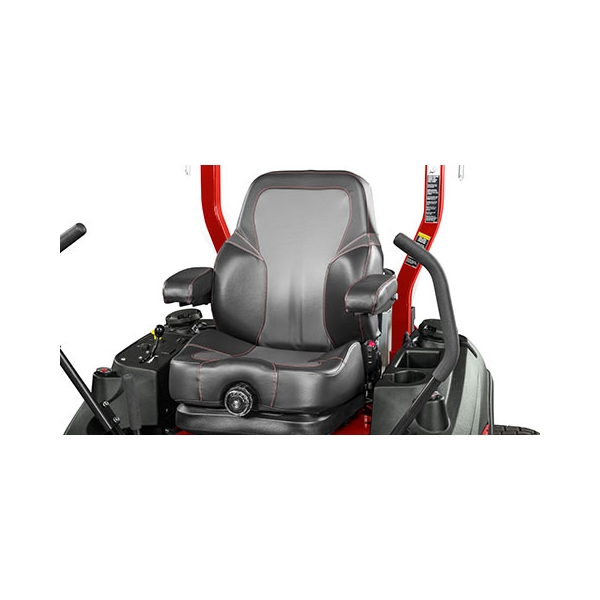 Premium high-back suspension seat with armrests, adjustable lumbar and back recline.