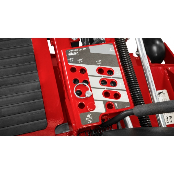 Foot-operated deck lift, with adjustable pedal, can change cut height in 1/4" increments from 1.5"- 5" (38 mm - 127 mm).