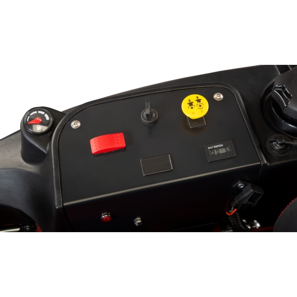 Seat activated engine kill, clutch safety switch, neutral and parking brake safety circuit, adjustable twin steering controls