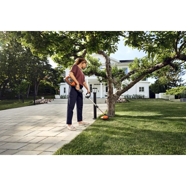 Husqvarna 215iL is a battery-powered grass trimmer that is well balanced, easy to maneuver, and has the power to trim everything from lawn edges to tall grass in large gardens. The telescopic shaft is easy to adjust based on different users for good ergonomics and facilitates storage and transport.