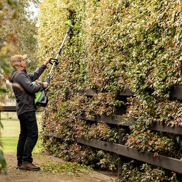 The GREENWORKS® 60V cordless pole hedge trimmer is the ideal choice for homeowners who want the convenience and benefits of going cordless for everyday yardwork.