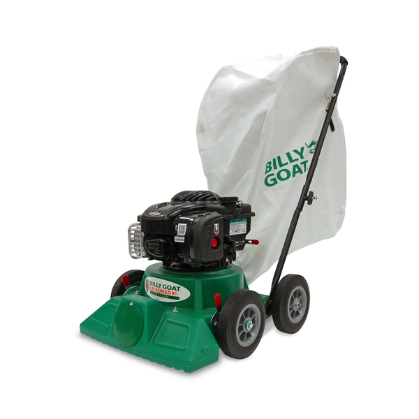 The wheel adjustment lever is simple to use and adjusts to hard surface or turf work and the 105 ltr capacity felt bag attaches quickly for easy clean up.